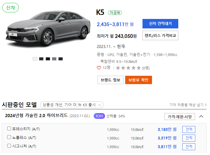| 2024 기아 K5 가격표(신형) (0) | 2024.08.10 |