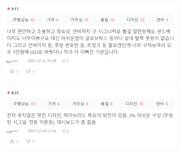 K5 하이브리드 오너평가는 아래와 같습니다. k5 하이브리드 오너평가 점수는 9.2점으로 확실히 디자인과 연비, 거주성 측면에서 좋은 평가를 받고 있습니다.